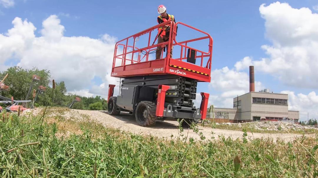 SKYJACK斯凱杰科正式推出全新SJ6940 RT越野剪叉式高空作業平臺,為品牌緊湊型越野剪叉車家族再添實力新品。